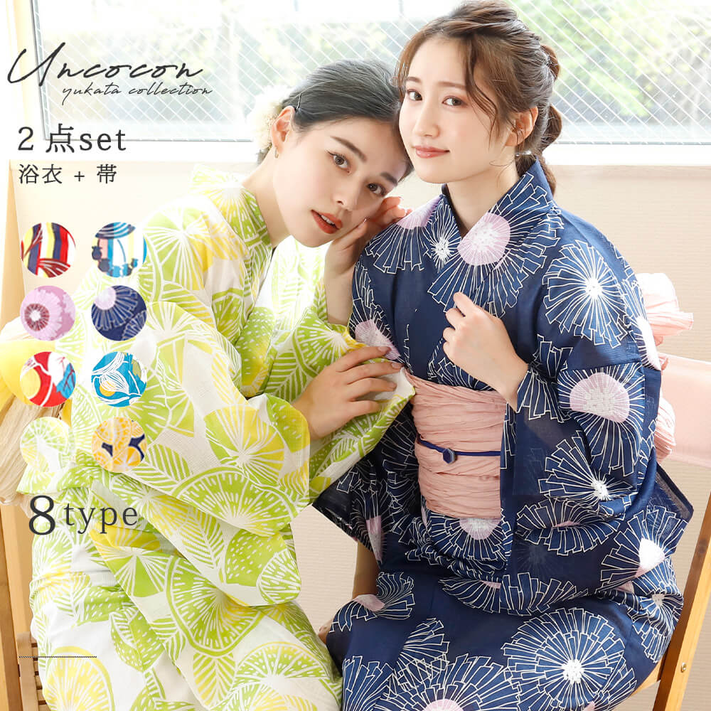 コーディネートはこちら c-1 | c-2 | c-3 | c-4 | c-5 | c-6 | c-7 | c-8 | UN COCON - アンココン - コレクション 大人モダン 浴衣 セット 大人 レディース ゆかた ユカタ 2点セット 女性浴衣 半巾帯 作り帯 レトロ RETRO 大正浪漫 大正ロマン 今年の夏は... 花火大会・夏祭り・盆踊り! お祭りごとに、浴衣だけを 変えてみるのもオススメです♪